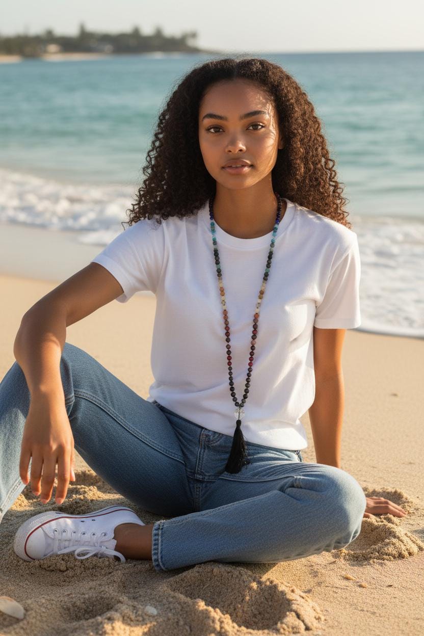 My Malas are available in two sizes: 8mm and 6mm. If you like a lighter or more petite style, the 6mm is a great choice. Each listing shows the Mala on a mannequin and a model so you can get a clear idea of how it looks. If you need guidance, just send me a note—I’m happy to help.
