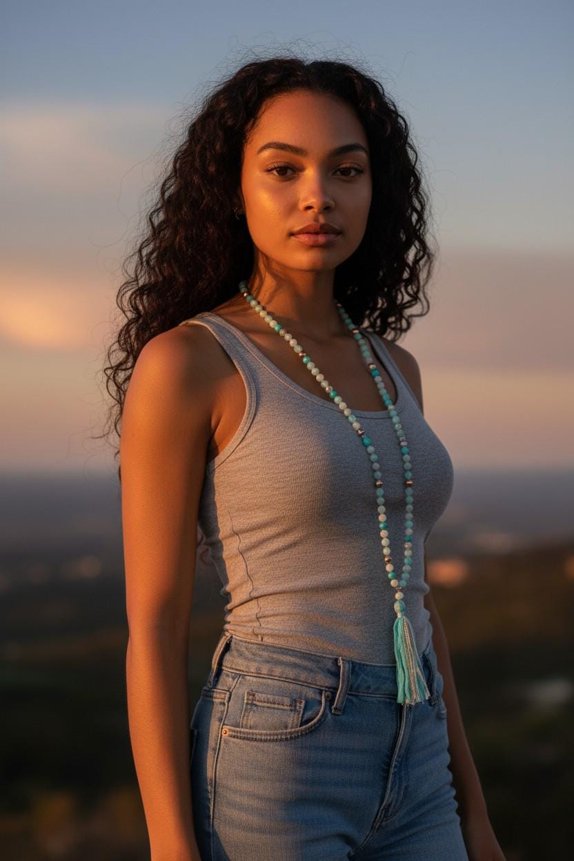 My Malas are available in two sizes: 8mm and 6mm. If you like a lighter or more petite style, the 6mm is a great choice. Each listing shows the Mala on a mannequin and a model so you can get a clear idea of how it looks. If you need guidance, just send me a note—I’m happy to help.