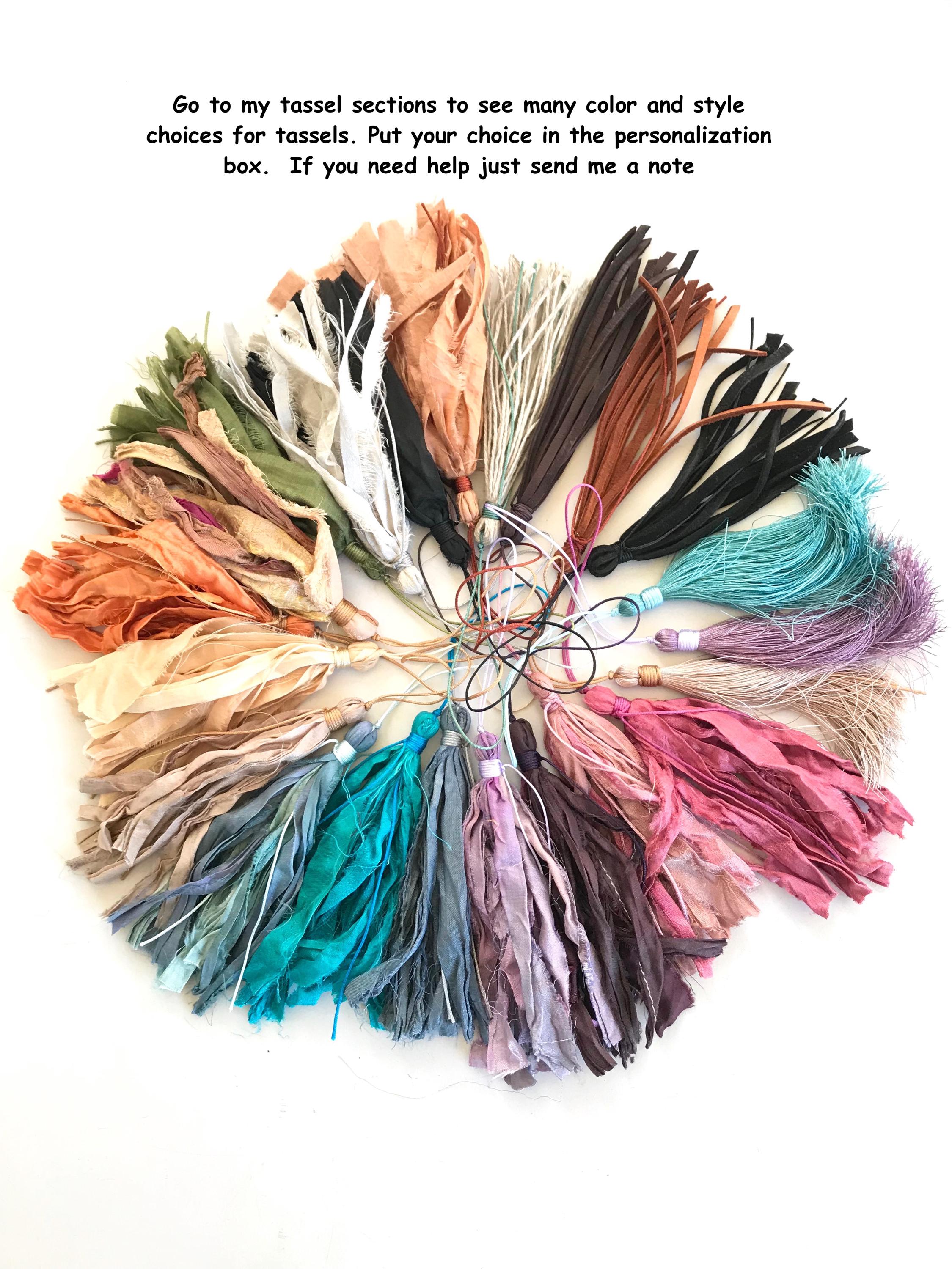 Go to my tassel section to see several hundred different color choices. I have separated the by shades to make it easier to find just the right color.