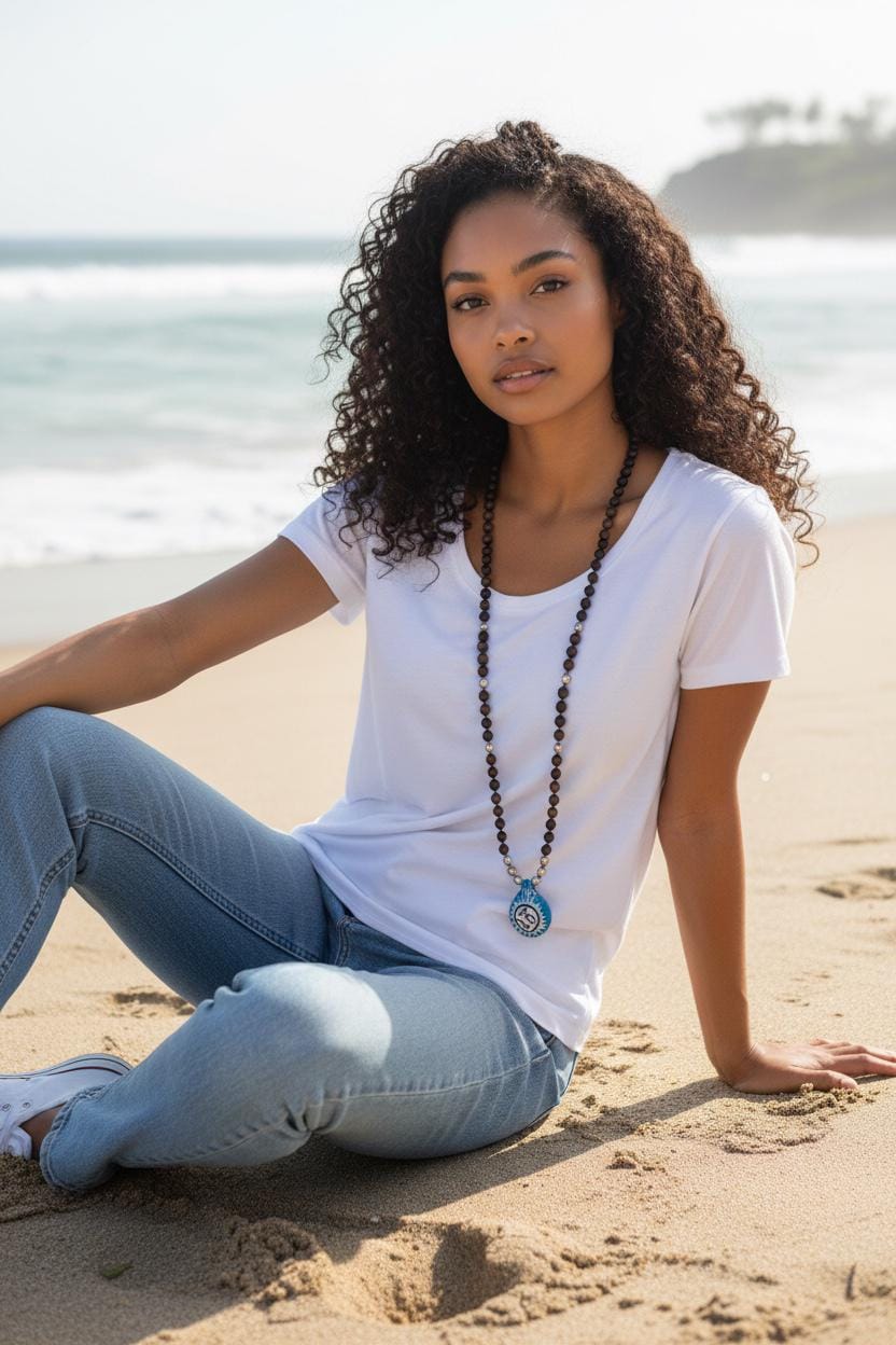 My Malas are available in two sizes: 8mm and 6mm. If you like a lighter or more petite style, the 6mm is a great choice. Each listing shows the Mala on a mannequin and a model so you can get a clear idea of how it looks. If you need guidance, just send me a note—I’m happy to help.