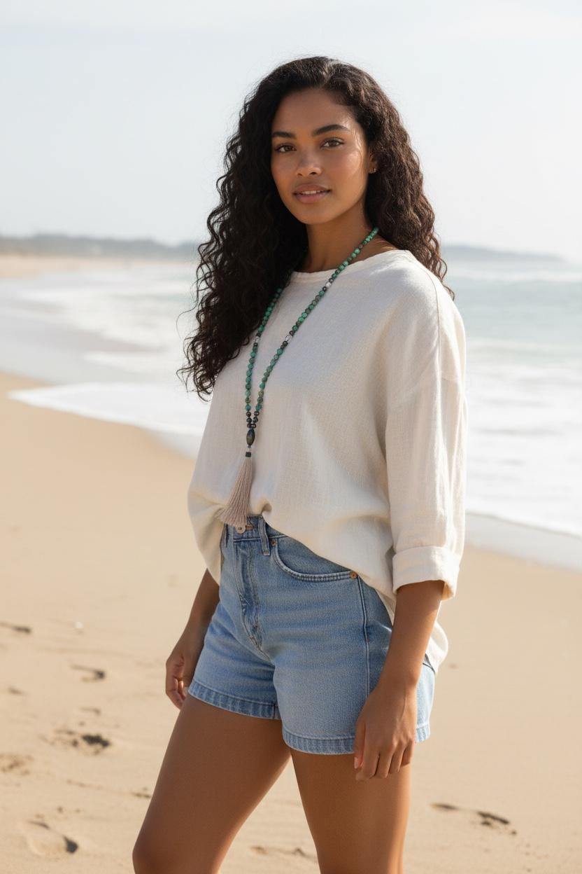 My Malas are available in two sizes: 8mm and 6mm. If you like a lighter or more petite style, the 6mm is a great choice. Each listing shows the Mala on a mannequin and a model so you can get a clear idea of how it looks. If you need guidance, just send me a note—I’m happy to help.