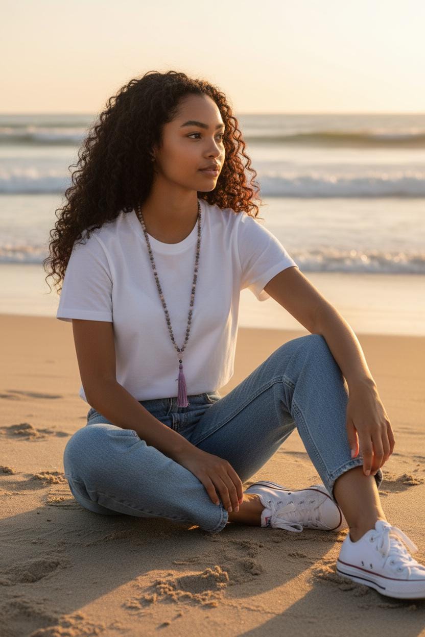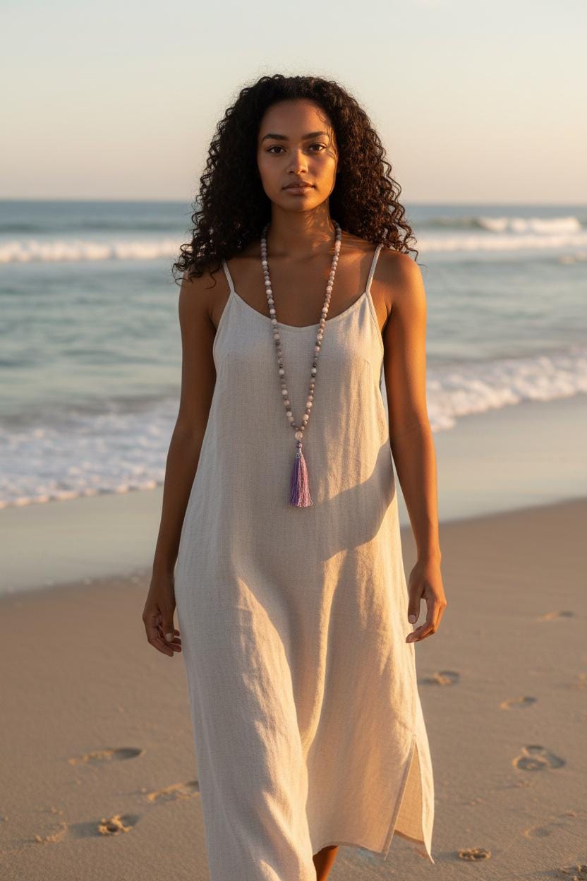 My Malas are available in two sizes: 8mm and 6mm. If you like a lighter or more petite style, the 6mm is a great choice. Each listing shows the Mala on a mannequin and a model so you can get a clear idea of how it looks. If you need guidance, just send me a note—I’m happy to help.