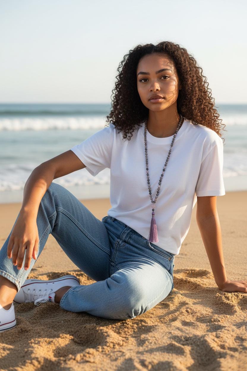 My Malas are available in two sizes: 8mm and 6mm. If you like a lighter or more petite style, the 6mm is a great choice. Each listing shows the Mala on a mannequin and a model so you can get a clear idea of how it looks. If you need guidance, just send me a note—I’m happy to help.