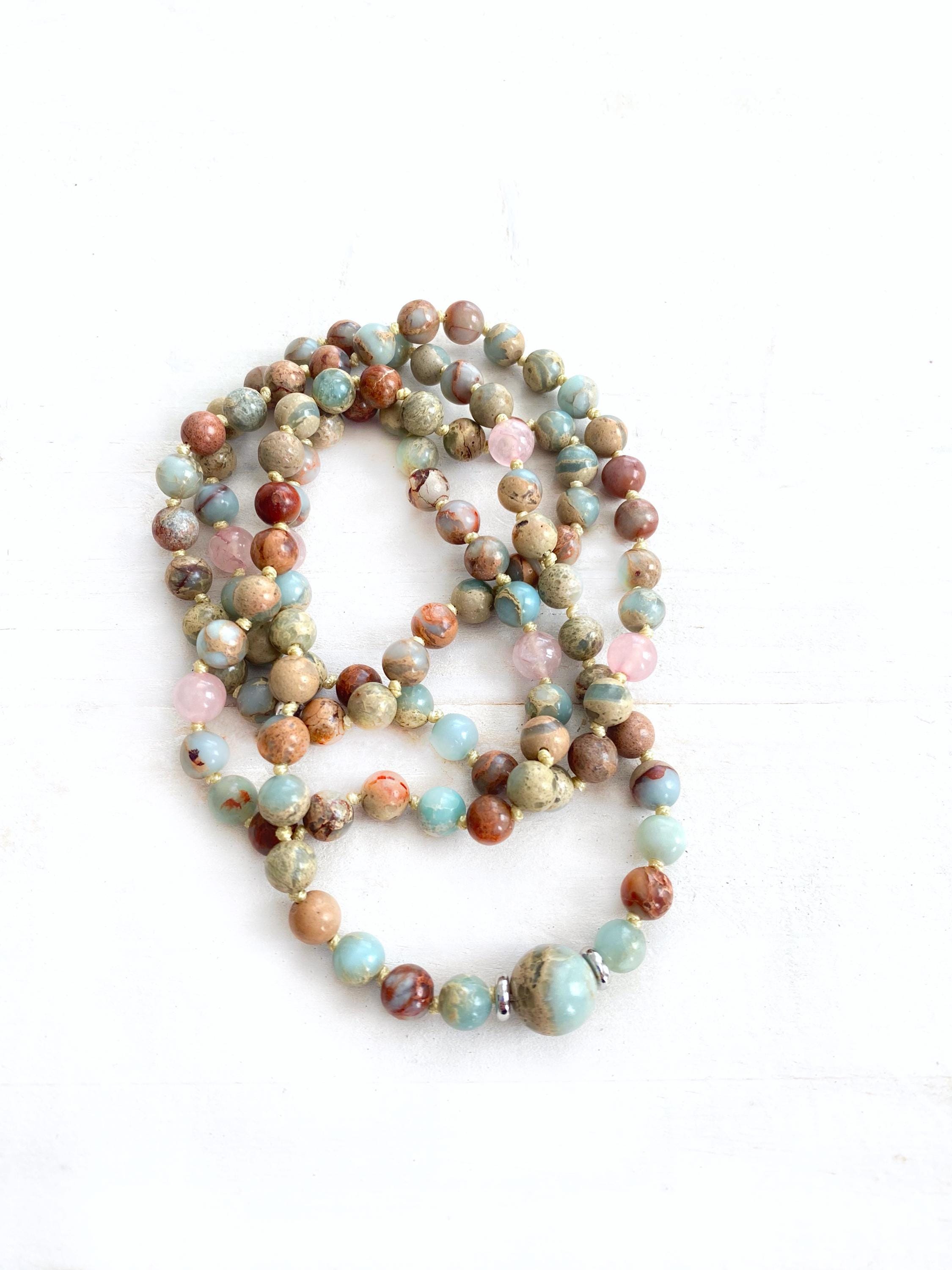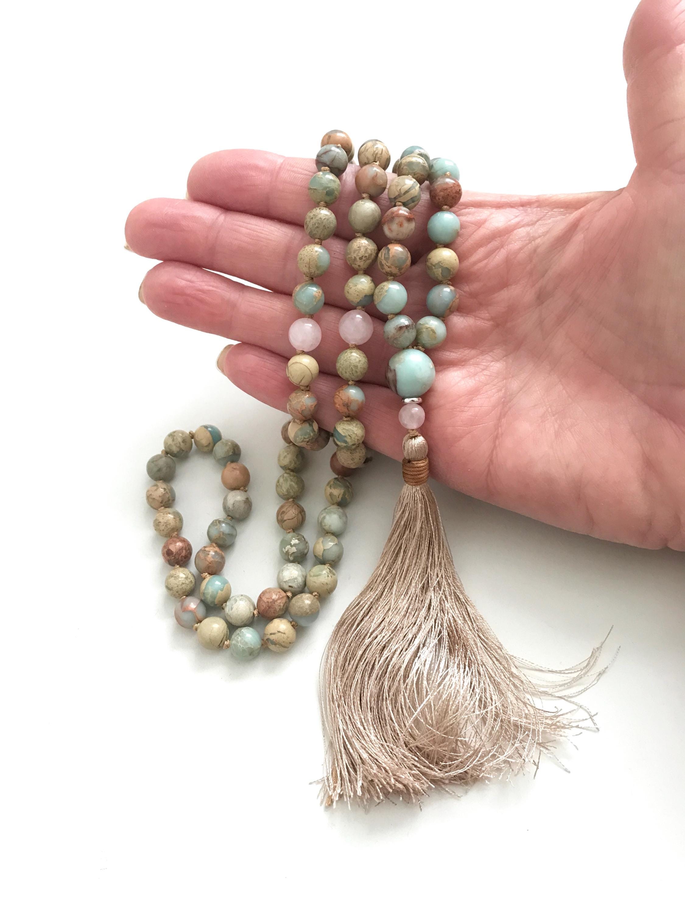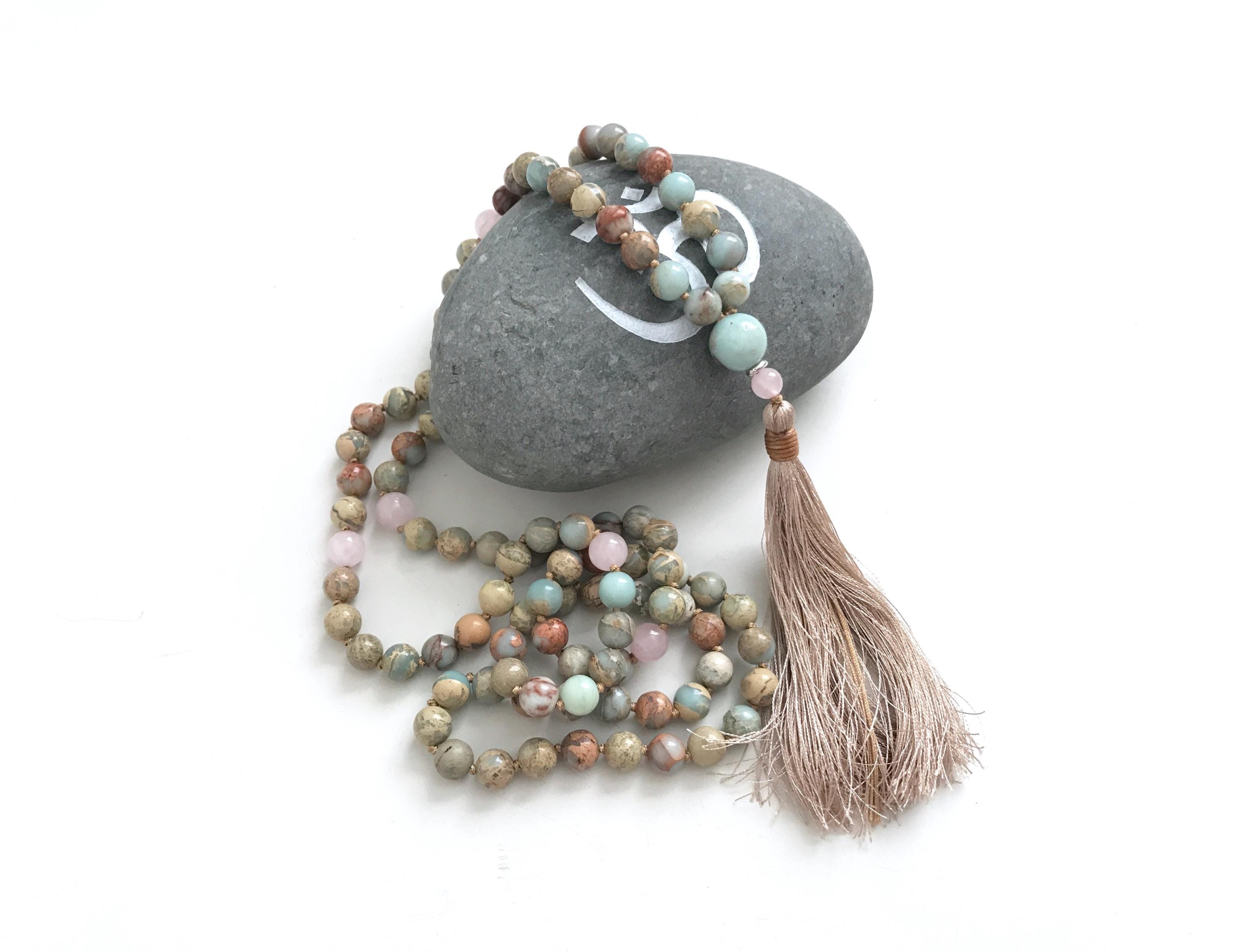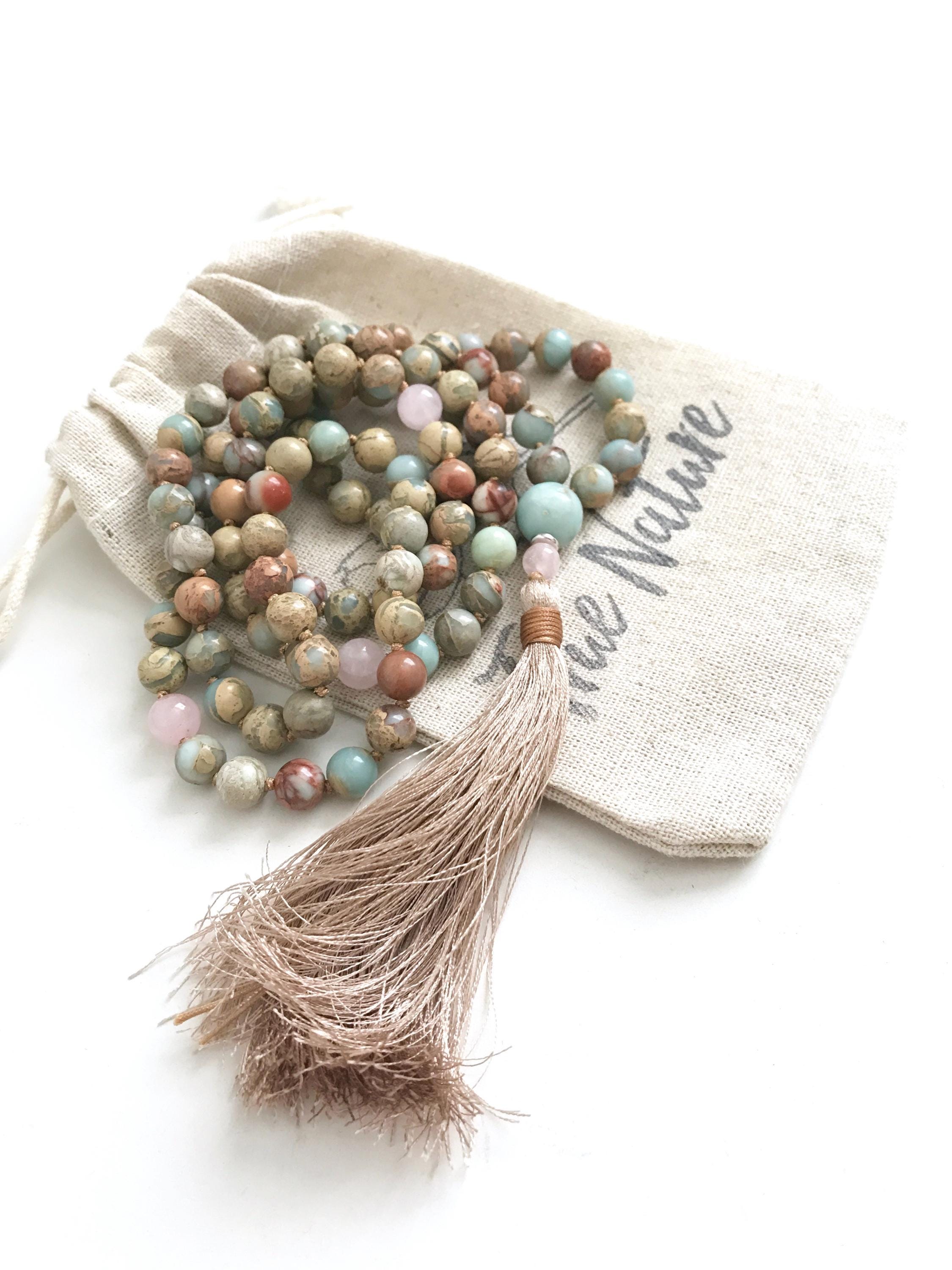 The Mala in these pictures has sold, you will receive a Mala made the same exact way as pictured with materials listed. All natural gemstones beads have their own unique markings and colors, so the Mala you receive will be an original True Nature Jewelry design