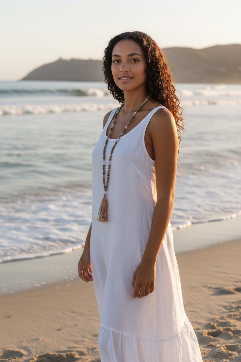 My Malas are available in two sizes: 8mm and 6mm. If you like a lighter or more petite style, the 6mm is a great choice. Each listing shows the Mala on a mannequin and a model so you can get a clear idea of how it looks. If you need guidance, just send me a note—I’m happy to help.