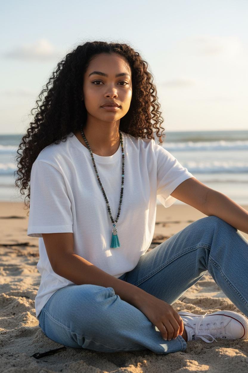 My Malas are available in two sizes: 8mm and 6mm. If you like a lighter or more petite style, the 6mm is a great choice. Each listing shows the Mala on a mannequin and a model so you can get a clear idea of how it looks. If you need guidance, just send me a note—I’m happy to help.