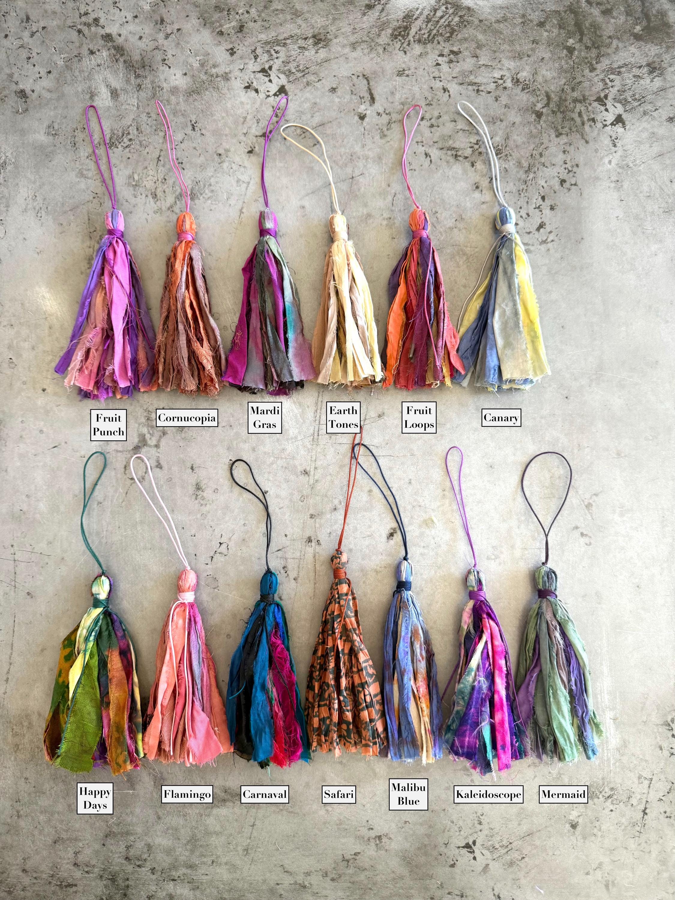 These sari silk tassels bring a touch of soulful beauty, repurposed tradition, and artisanal detail to any project you create.