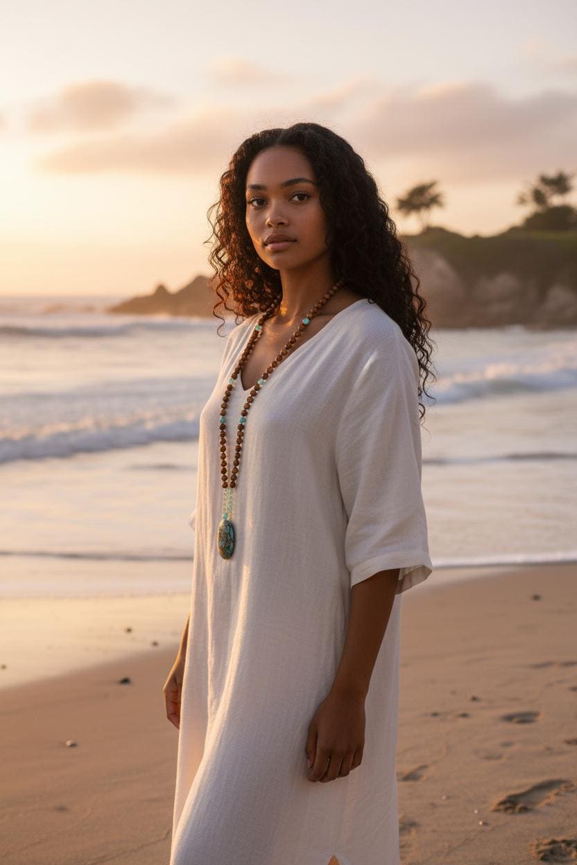 My Malas are available in two sizes: 8mm and 6mm. If you like a lighter or more petite style, the 6mm is a great choice. Each listing shows the Mala on a mannequin and a model so you can get a clear idea of how it looks. If you need guidance, just send me a note—I’m happy to help.