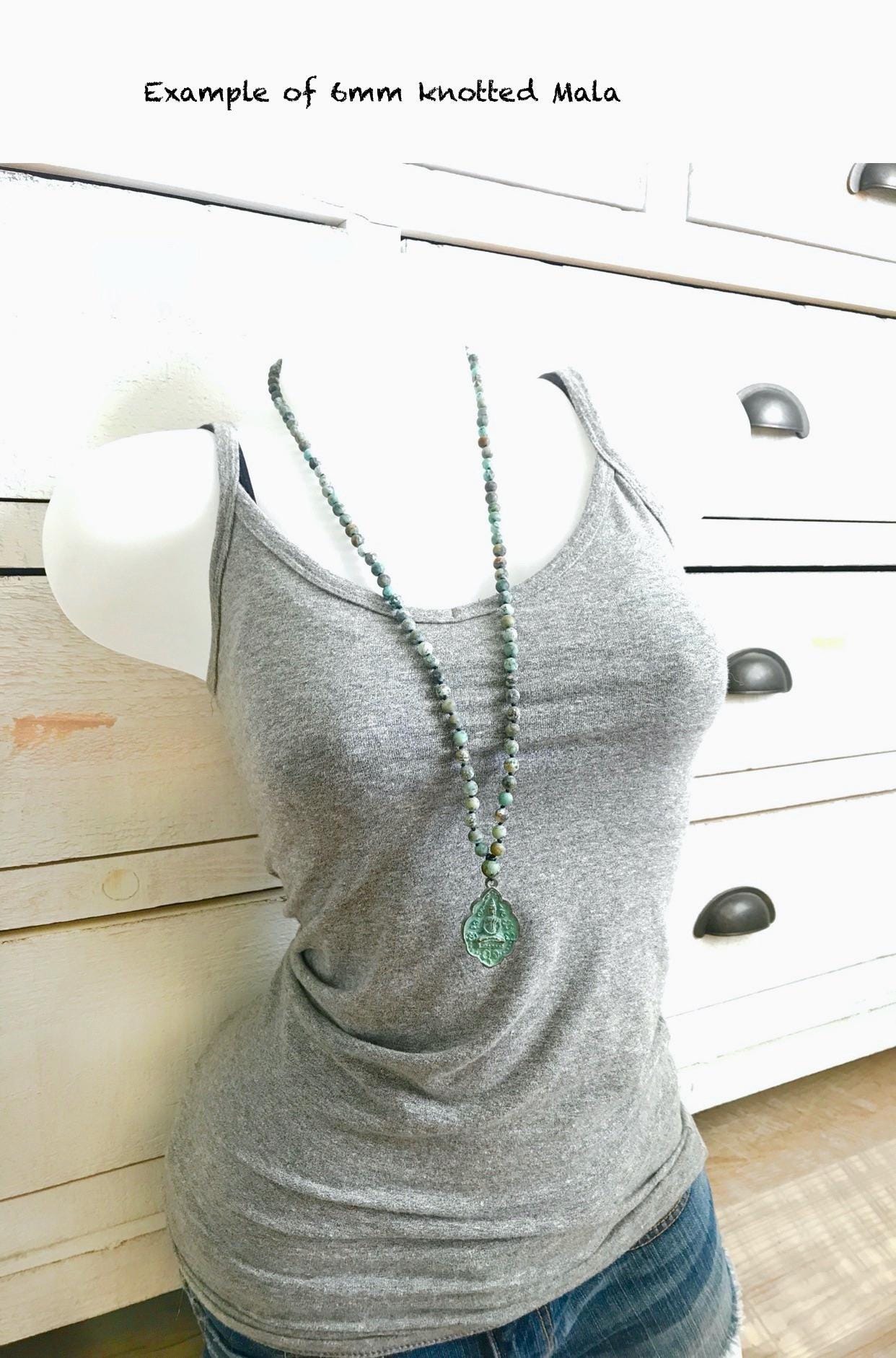 The Mala in these pictures has sold, you will receive a Mala made the same exact way as pictured with materials listed. All natural gemstones beads have their own unique markings and colors, so the Mala you receive will be an original True Nature Jewelry design
