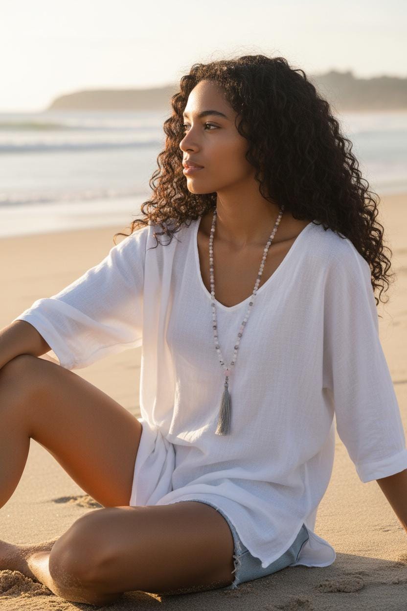 My Malas are available in two sizes: 8mm and 6mm. If you like a lighter or more petite style, the 6mm is a great choice. Each listing shows the Mala on a mannequin and a model so you can get a clear idea of how it looks. If you need guidance, just send me a note—I’m happy to help.