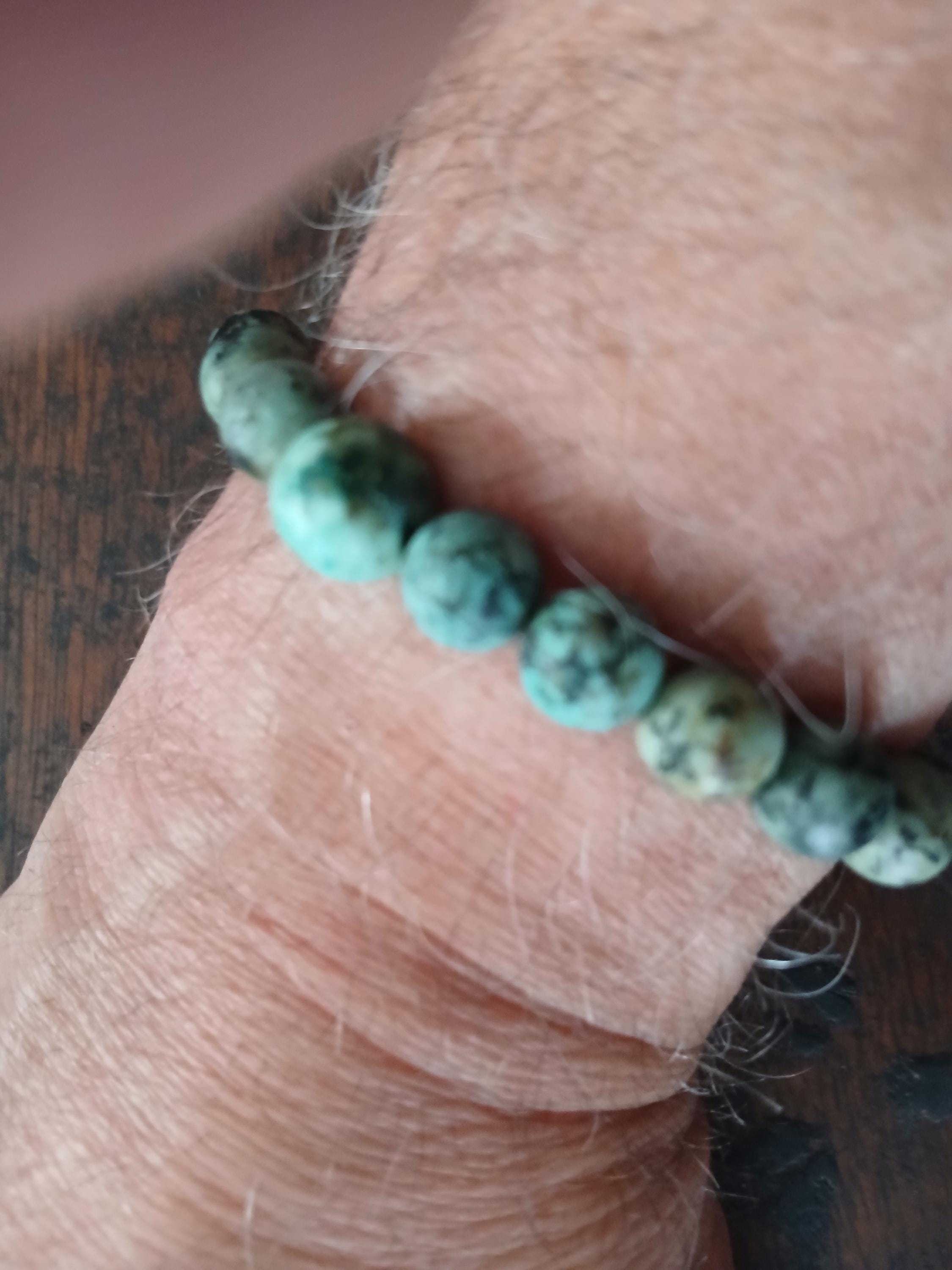 Grounding and uplifting, this bracelet is made from matte African Turquoise beads and strung on strong stretch cord, with an adjustable style also offered for comfort. African Turquoise, often called the “stone of evolution,” is believed to encourage growth, transformation, and positive change, while promoting inner strength and balance. A simple yet meaningful bracelet that’s perfect for everyday wear, meditation, or as a thoughtful gift.
