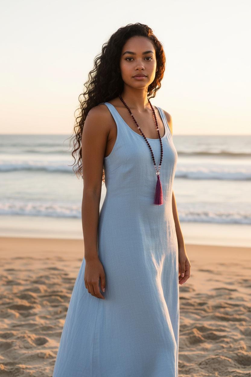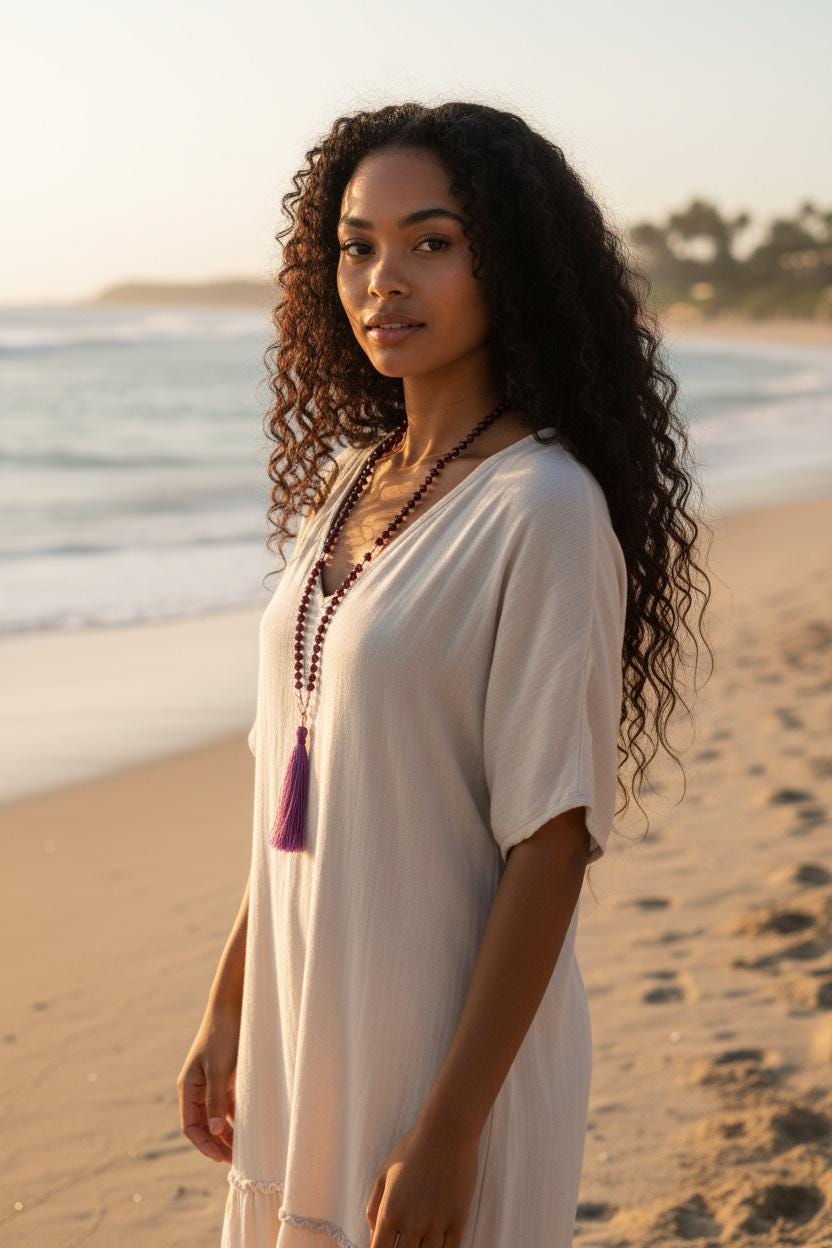 My Malas are available in two sizes: 8mm and 6mm. If you like a lighter or more petite style, the 6mm is a great choice. Each listing shows the Mala on a mannequin and a model so you can get a clear idea of how it looks. If you need guidance, just send me a note—I’m happy to help.