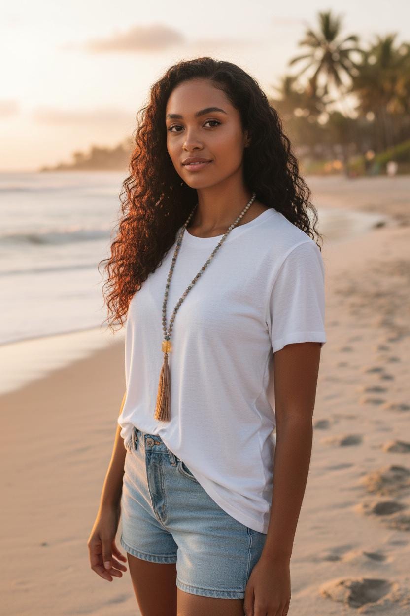 My Malas are available in two sizes: 8mm and 6mm. If you like a lighter or more petite style, the 6mm is a great choice. Each listing shows the Mala on a mannequin and a model so you can get a clear idea of how it looks. If you need guidance, just send me a note—I’m happy to help.
