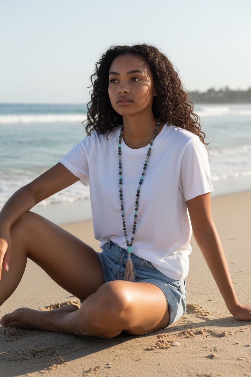 The Mala shown in the photos has already been chosen, but yours will be handcrafted with the same design, intention, and natural gemstone energies. Because each stone carries its own unique colors and markings, every Mala becomes a one-of-a-kind True Nature Jewelry creation—beautiful in its own natural expression.