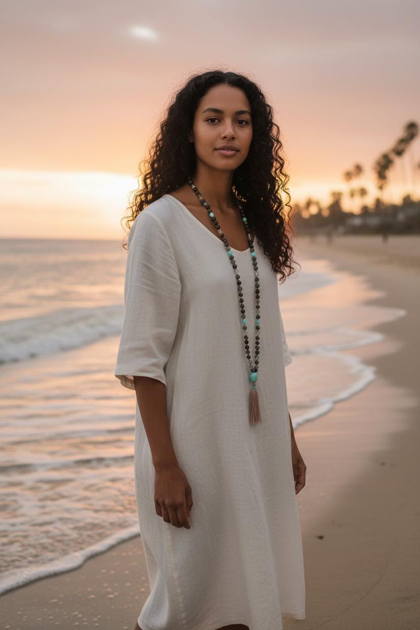 My Malas are available in two sizes: 8mm and 6mm. If you like a lighter or more petite style, the 6mm is a great choice. Each listing shows the Mala on a mannequin and a model so you can get a clear idea of how it looks. If you need guidance, just send me a note—I’m happy to help.
