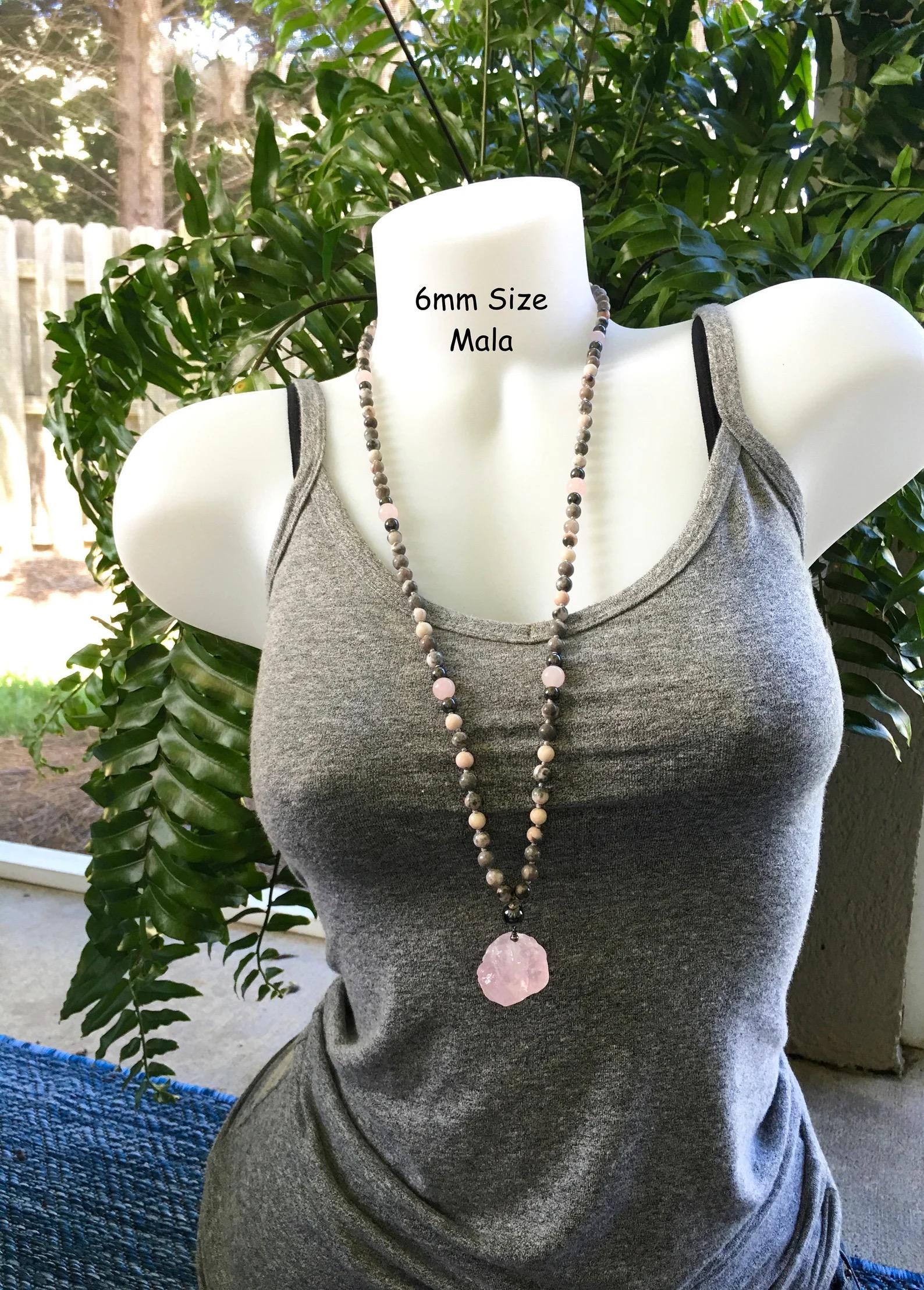 The Mala in these pictures has sold, you will receive a Mala made the same exact way as pictured with materials listed. All natural gemstones beads have their own unique markings and colors, so the Mala you receive will be an original True Nature Jewelry design