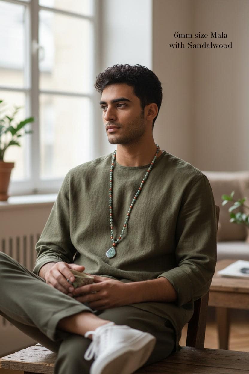 My Malas are available in two sizes: 8mm and 6mm. If you like a lighter or more petite style, the 6mm is a great choice. Each listing shows the Mala on a mannequin and a model so you can get a clear idea of how it looks. If you need guidance, just send me a note—I’m happy to help.