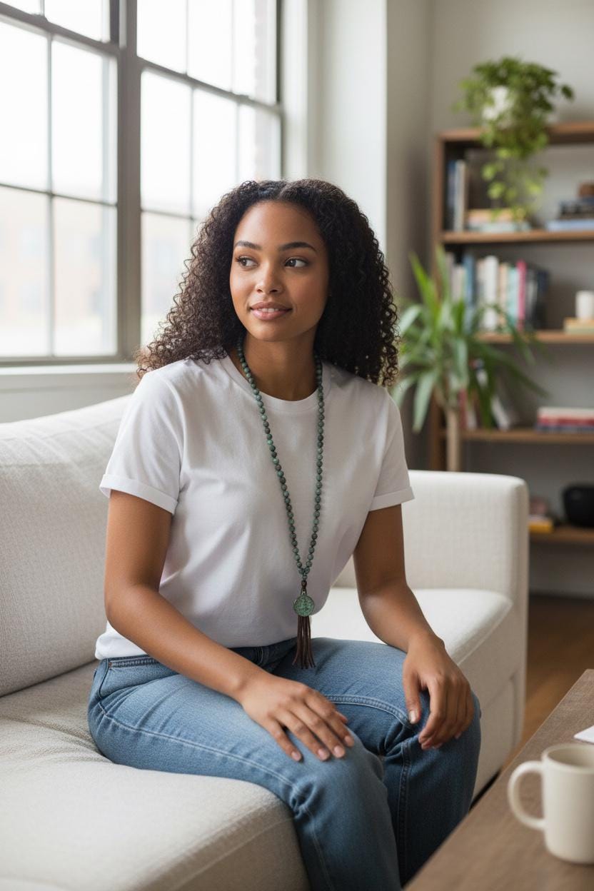 My Malas are available in two sizes: 8mm and 6mm. If you like a lighter or more petite style, the 6mm is a great choice. Each listing shows the Mala on a mannequin and a model so you can get a clear idea of how it looks. If you need guidance, just send me a note—I’m happy to help.