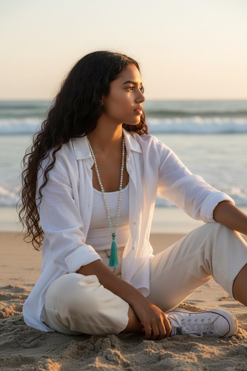 My Malas are available in two sizes: 8mm and 6mm. If you like a lighter or more petite style, the 6mm is a great choice. Each listing shows the Mala on a mannequin and a model so you can get a clear idea of how it looks. If you need guidance, just send me a note—I’m happy to help.