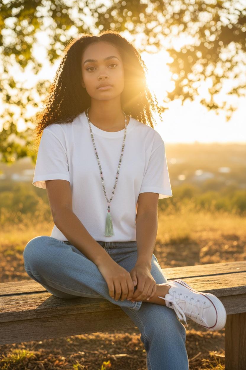 I personally design each Mala, carefully planning and laying out the bead design on a special bead board meant for 108 bead Mala’s. Every bead is hand-knotted by me for flexibility and beauty. I also create the tassels myself using Sari silk fabric, silk thread, cotton or other natural fibers. I can attach a pendant to any Mala if you choose not to have a tassel