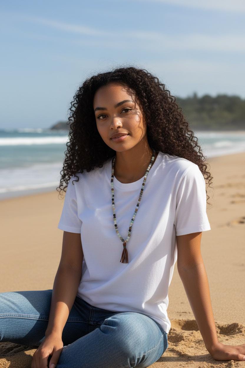 My Malas are available in two sizes: 8mm and 6mm. If you like a lighter or more petite style, the 6mm is a great choice. Each listing shows the Mala on a mannequin and a model so you can get a clear idea of how it looks. If you need guidance, just send me a note—I’m happy to help.