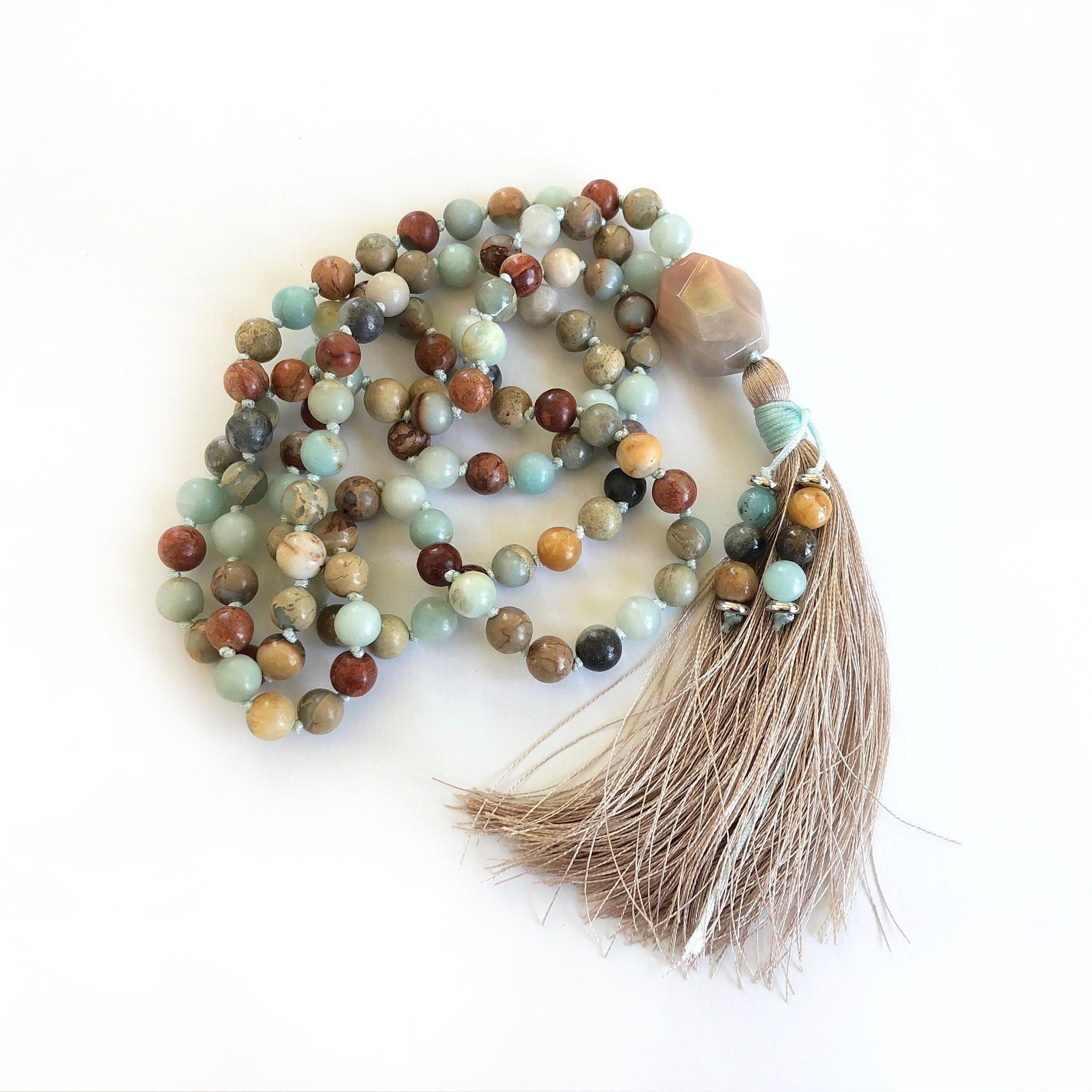 The Mala shown in the photos has already been chosen, but yours will be handcrafted with the same design, intention, and natural gemstone energies. Because each stone carries its own unique colors and markings, every Mala becomes a one-of-a-kind True Nature Jewelry creation—beautiful in its own natural expression.