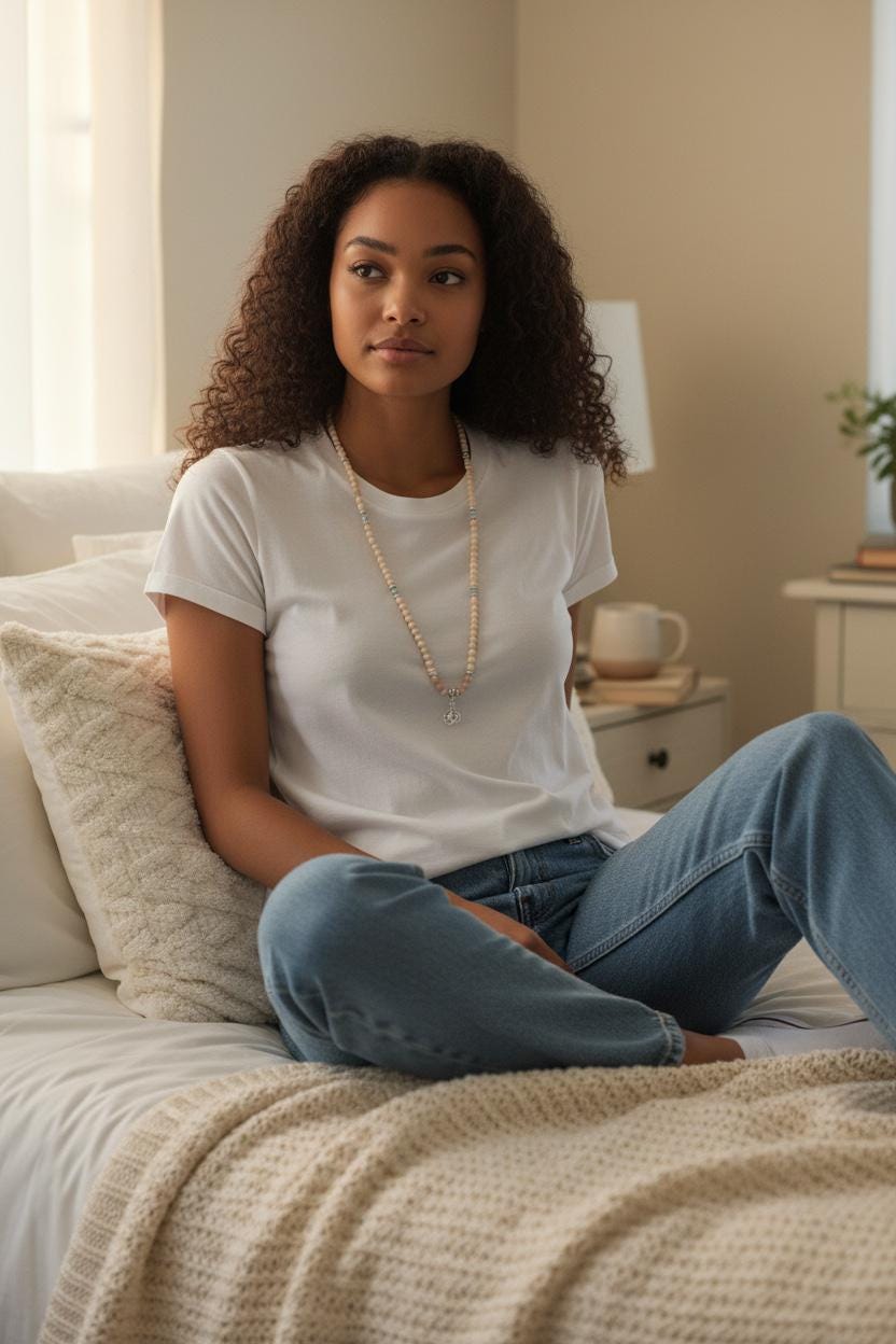 My Malas are available in two sizes: 8mm and 6mm. If you like a lighter or more petite style, the 6mm is a great choice. Each listing shows the Mala on a mannequin and a model so you can get a clear idea of how it looks. If you need guidance, just send me a note—I’m happy to help.