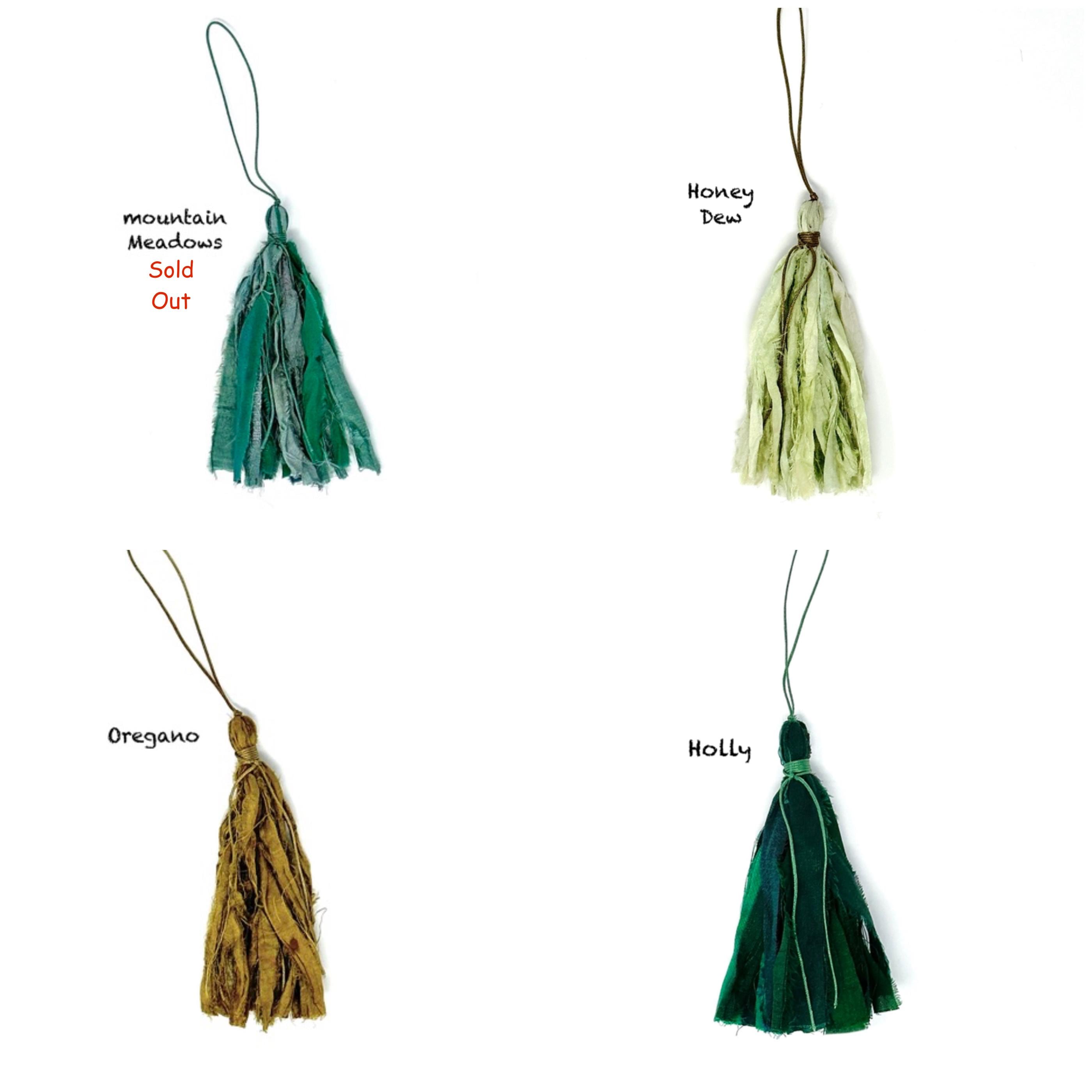 These green sari silk tassels bring grounding energy, heartfelt symbolism, and handmade beauty to every piece you create.