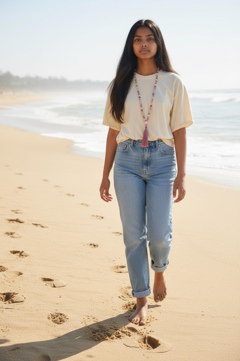 I personally design each Mala, carefully planning and laying out the bead design on a special bead board meant for 108 bead Mala’s. Every bead is hand-knotted by me for flexibility and beauty. I also create the tassels myself using Sari silk fabric, silk thread, cotton or other natural fibers. I can attach a pendant to any Mala if you choose not to have a tassel